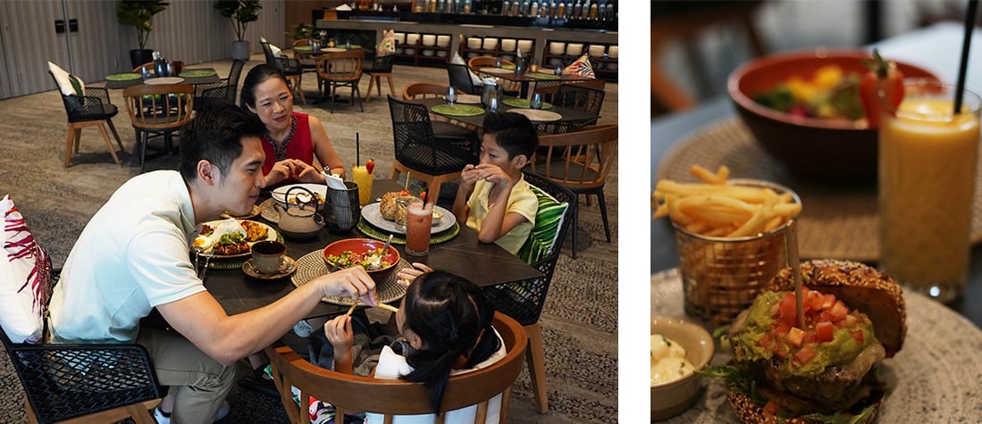 The Family Room is definitely the highlight of Village Hotel Sentosa and we were fortunate to have spent our stay here. We were so excited to see its two connecting rooms, one of which was tailored especially for kids. Yup, the kids get a hotel room all to themselves complete with a full set of fun-sized amenities upon request. These include baby bathtubs, bassinets, children’s toiletries, and even kid-sized bathrobes personalised with their names. Talk about thoughtful hotel service! With their room decked with a view of the pool or island, your kids will definitely feel like a boss too!
